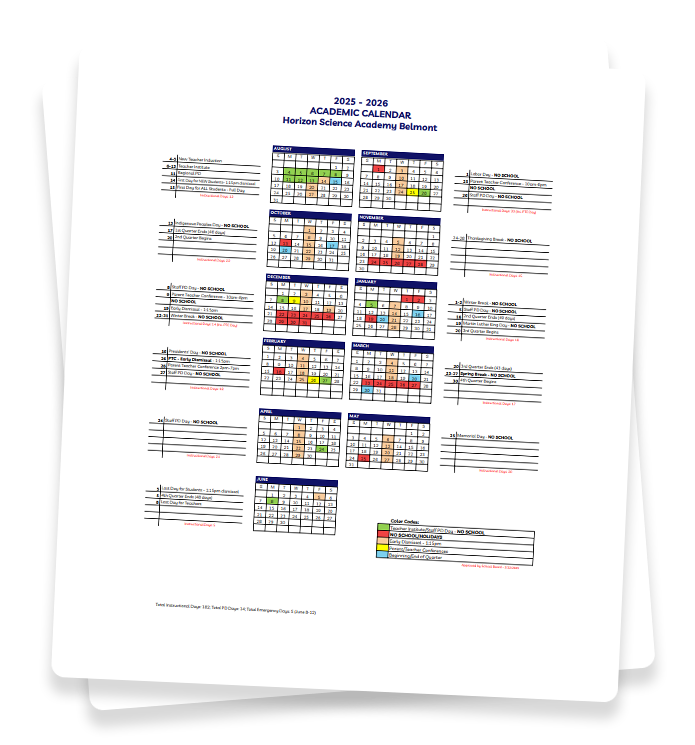 There’s plenty happening at Horizon Science Academy Belmont! Check out our calendar to see what we have planned throughout the school year.